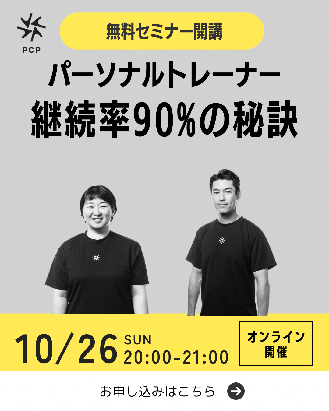 【10/26 30名限定 無料オンラインセミナー開催のお知らせ】パーソナルトレーナー継続率90%の秘訣